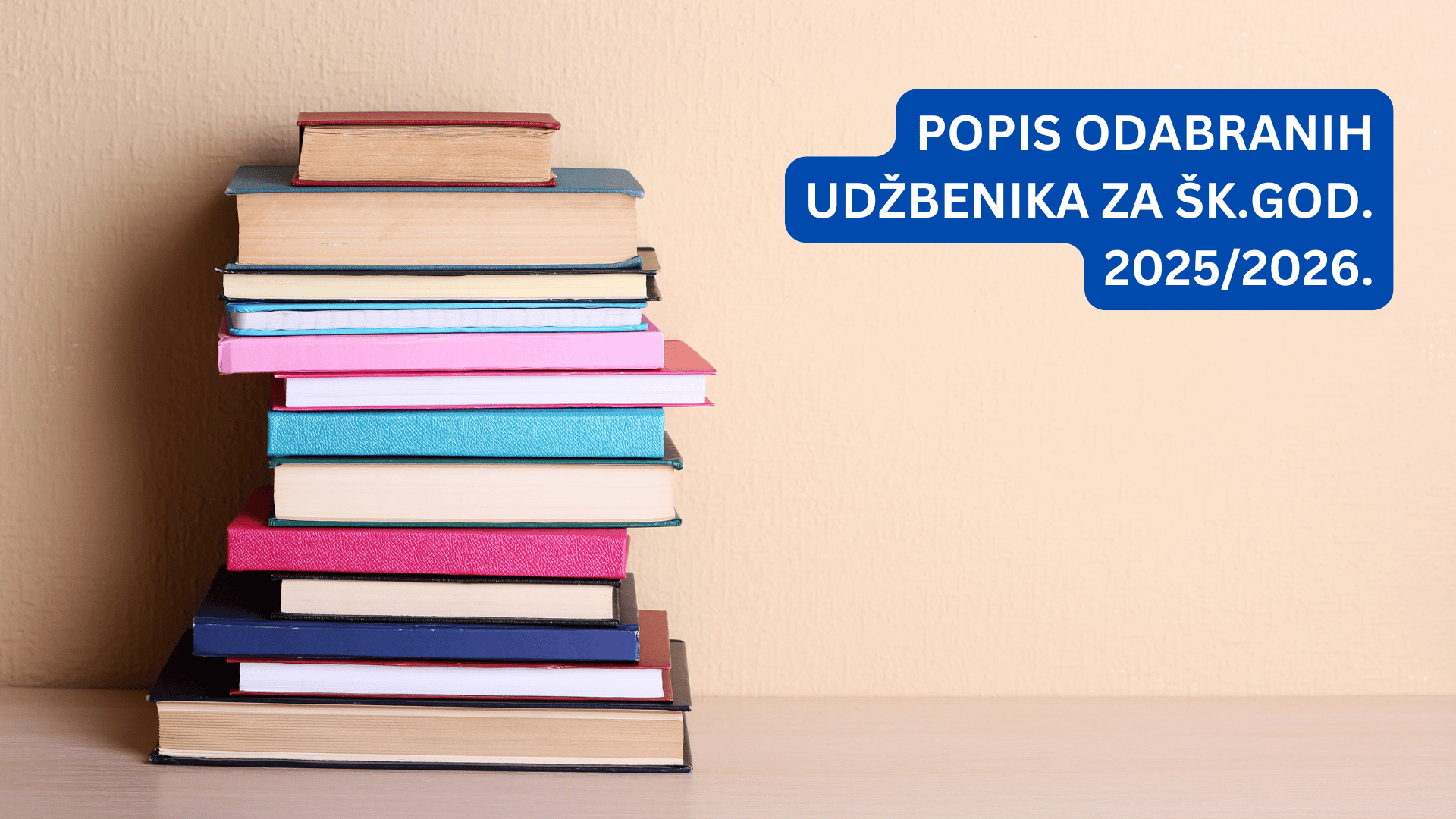 Poštovani učenici i roditelji, popis udžbenika za nadolazeću školsku godinu 2025./2026. možete pronaći na poveznici: Popis odabranih udžbenika za šk. god. 2025./2026.