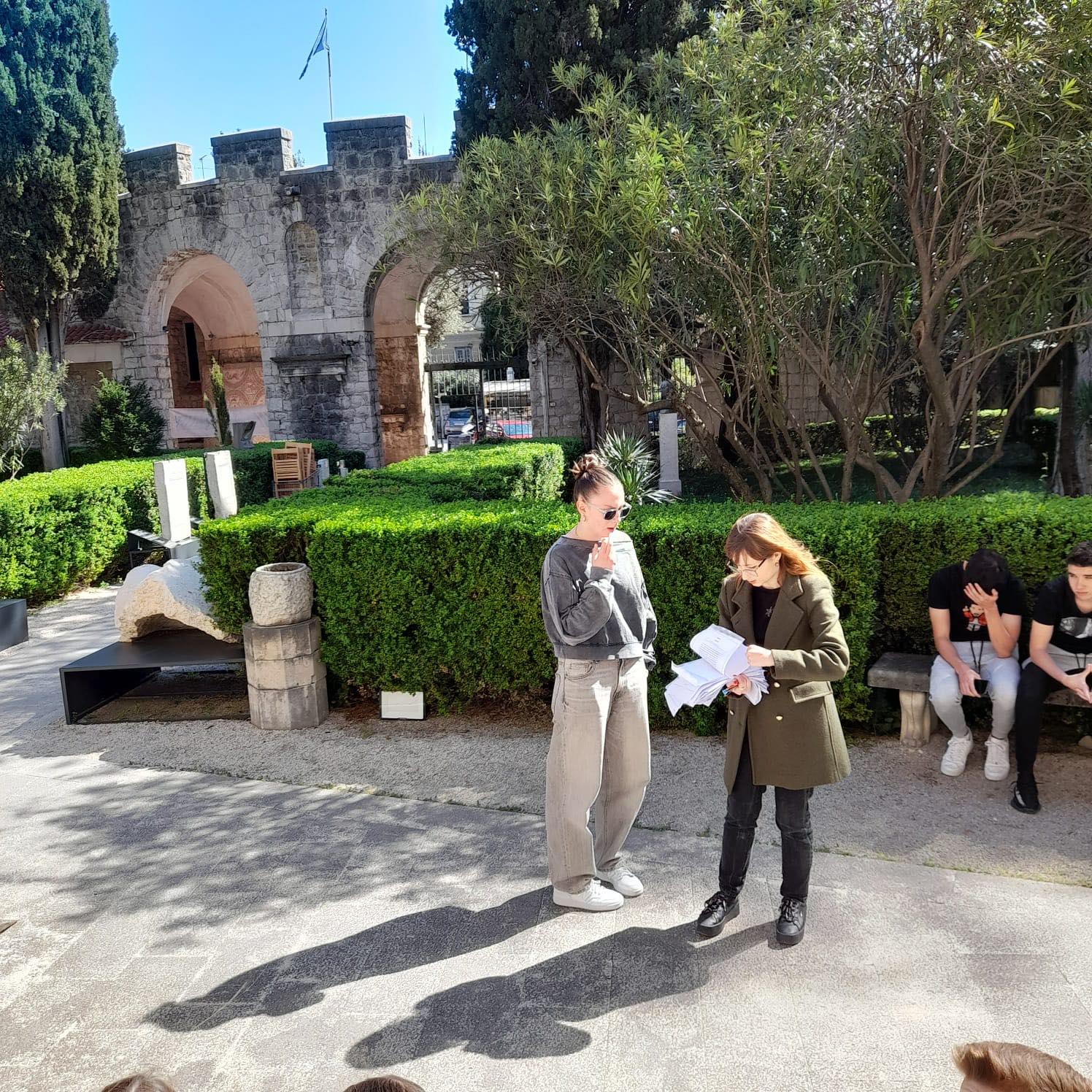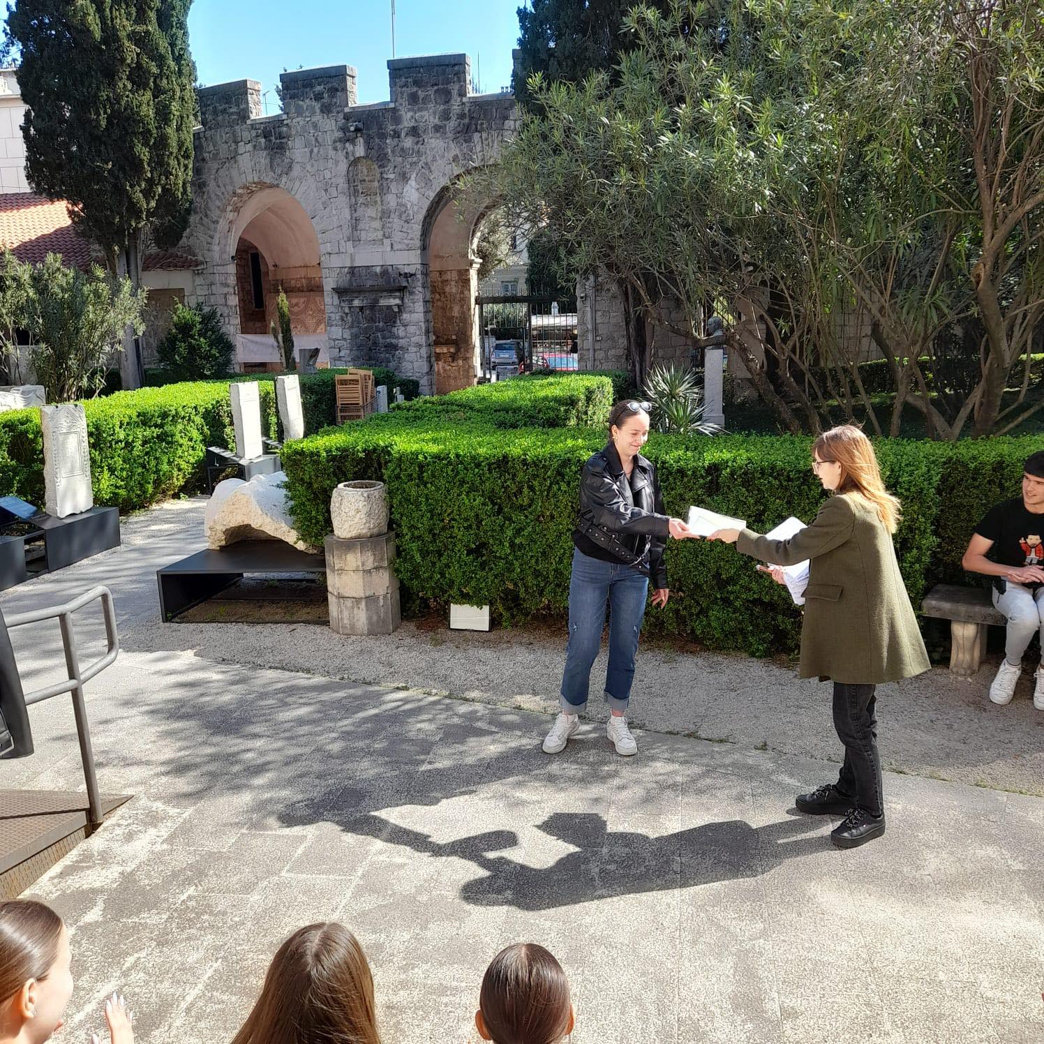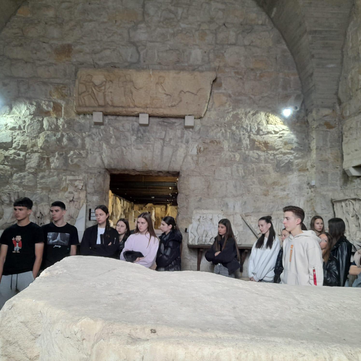 Učenici 1. d razreda posjetili su u petak (4. travnja 2025.), u pratnji profesora Pina Repanića i profesorice Josipe Stipice, Arheološki muzej u Splitu. Uz stručno vodstvo muzejskoga kustosa upoznali su spomenike u lapidariju, a potom sudjelovali u aktivnosti “Sherlock u muzeju” pa su, slijedeći tragove, otkrili intrigantne priče.