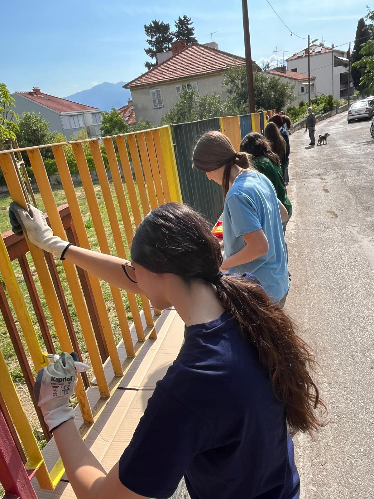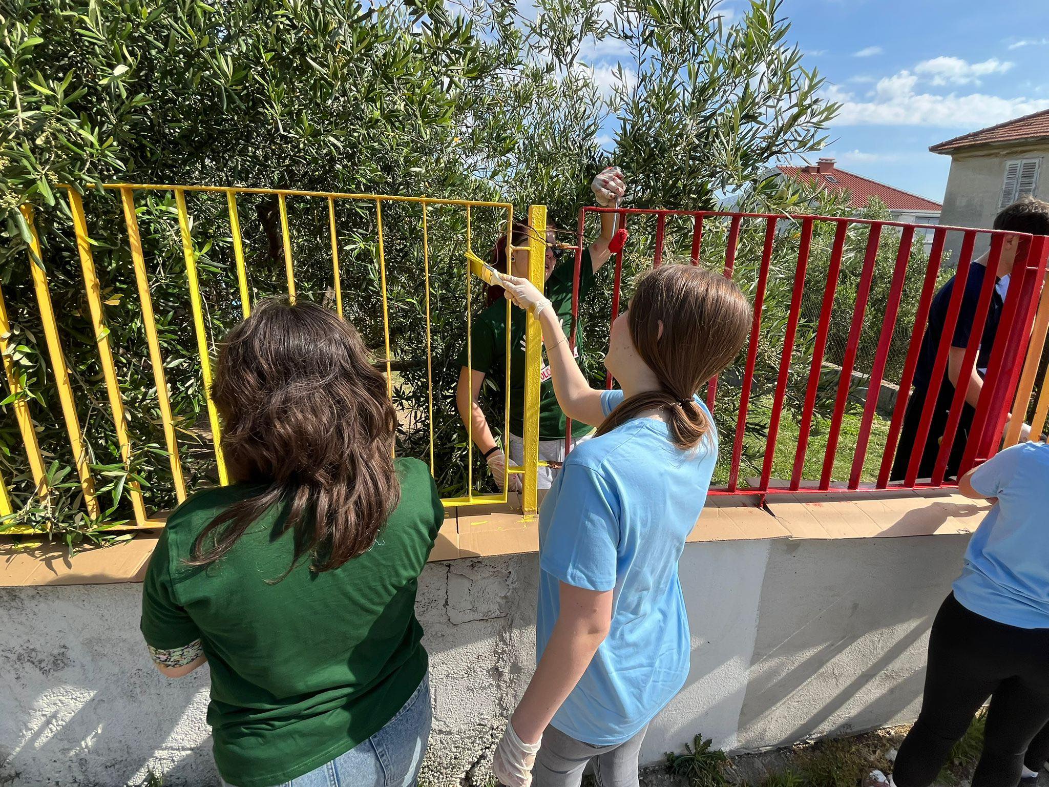 Volonterke naše škole Petra Goleš, Lana Grgić, Tonka Klarica, Manuela Kuščević, Petra Prusac, Julia Rapić, Karmel Šarac i Katja Vidošević sudjelovale su u akciji uređenja okoliša Dječjeg vrtića Marjan – Mandalina.