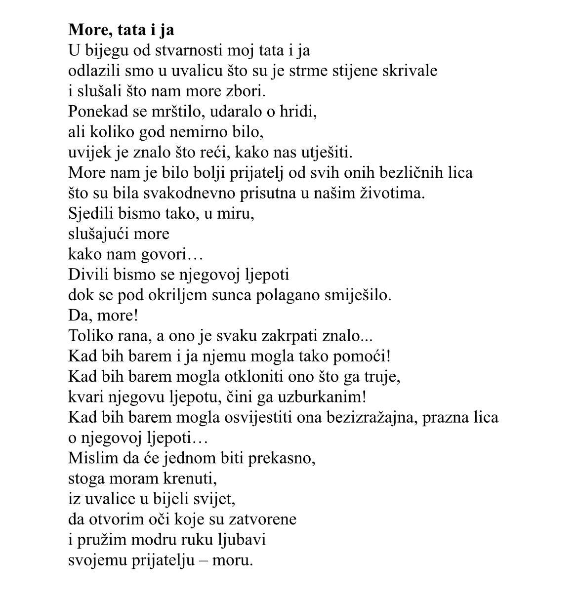 U fotogaleriji možete vidjeti Frankinu fotografiju i pročitati nagrađene pjesme – Petrinu pjesmu “More, tata i ja” i Paulinu pjesmu “Moje more”.