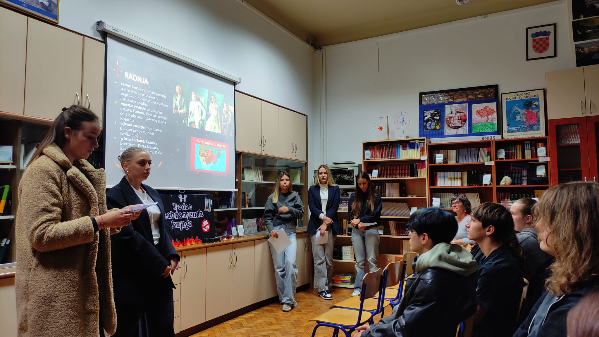Učenice 1. A razreda (Tonka Boellaard, Mare Vitlić, Lucija Došen, Ana Ćurković, Ema Orlandini i Anđela Čule) govorile su o prešućivanom podtekstu bajke „Trnoružica“, naučili smo kako se stvara distopijski svijet u „Igrama gladi“ kroz prezentaciju Grete Babić, Lane Borne Meštrović, Eve Jelavić-Šako, Nine Nazlić i Matee Milković iz 3. E razreda, a njihove razredne kolegice Laura Kovačević, Ana Lelas i Marija Delić sjajno su predstavile kultni roman „Let iznad kukavičjeg gnijezda“ i njegov utjecaj na percepciju i liječenje mentalnih bolesti.