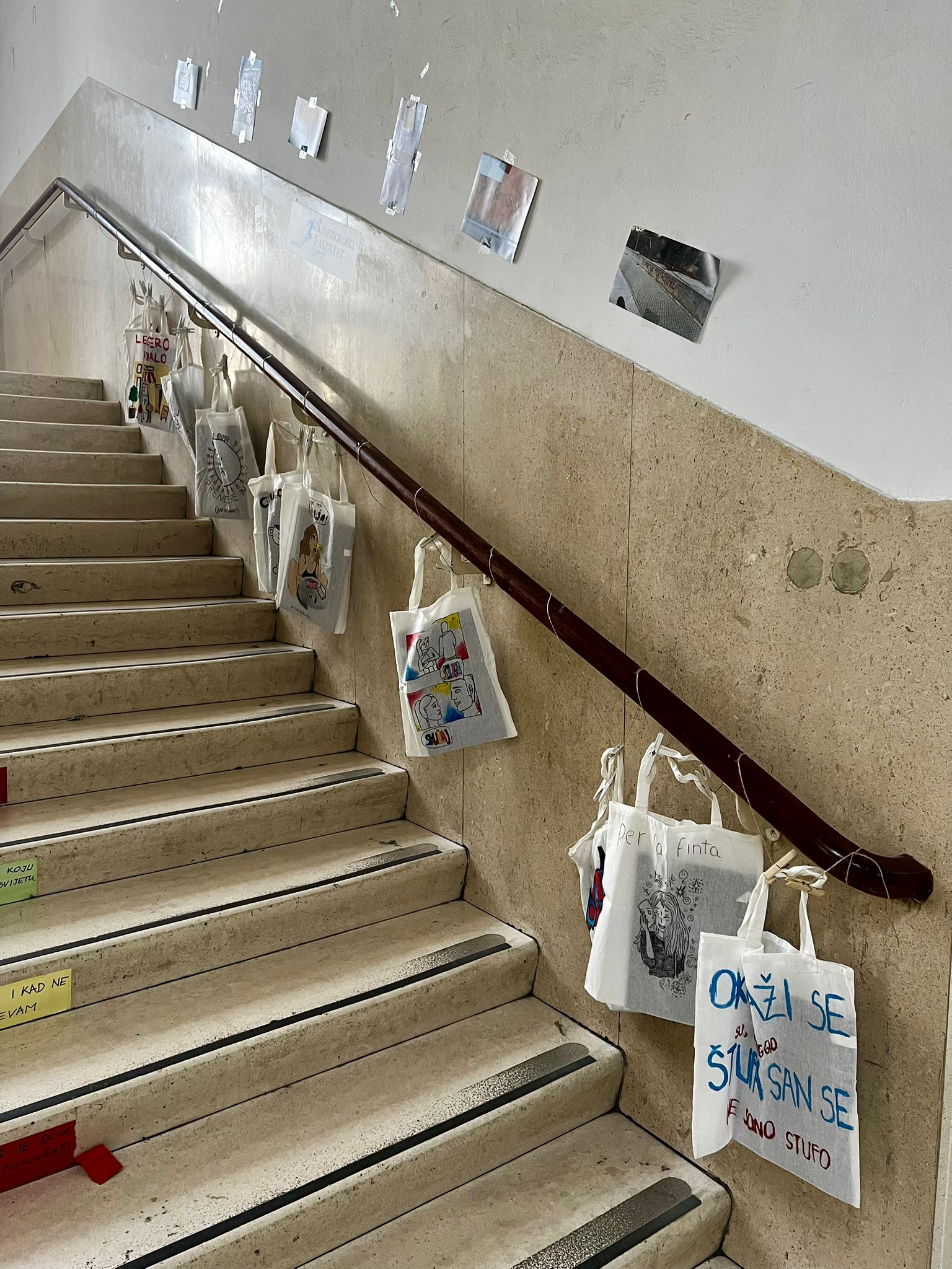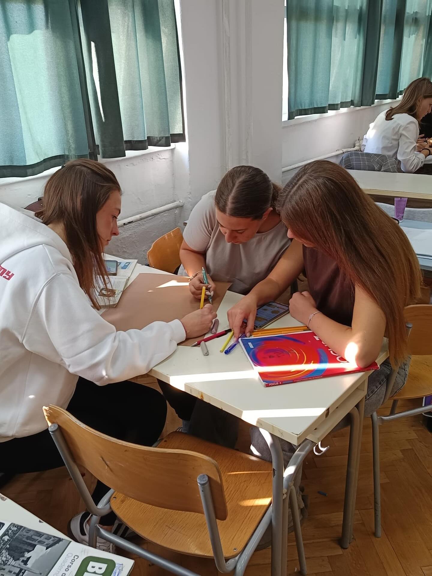 Prošli tjedan smo tradicionalno obilježili XXV. Tjedan talijanskog jezika u svijetu s temom „Italofonija – jezik izvan granica”. Učenici su, skupa s profesoricama Brzica i Grepo, promišljali na koje su sve načine talijanski jezik i kultura prisutni u našoj svakodnevici. Pronašli su ga u splitskom lokalnom govoru, na jelovniku, u pjesmama, ali i na ulicama grada, u nazivima lokala i obrta. Sve navedene pronalaske iskoristili su za izradu plakata, ali i za radionicu oslikavanja platnenih torbi koju smo organizirali u školi.